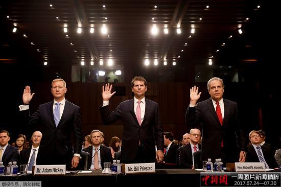 資料圖:當地時間2017年7月26日,美國華盛頓,司法部負責國家安全的副助理部長、聯邦調查局反間諜部門副局長和司法部監察長就“通俄門”作證。