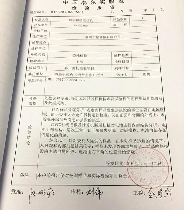 “我(的手機)26號就炸了,三星沒有檢測事故原因,就在29號發公告説所有中國區的手機都是安全的,他們是何種手段判斷我的手機(爆炸)是人為的?”