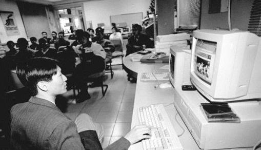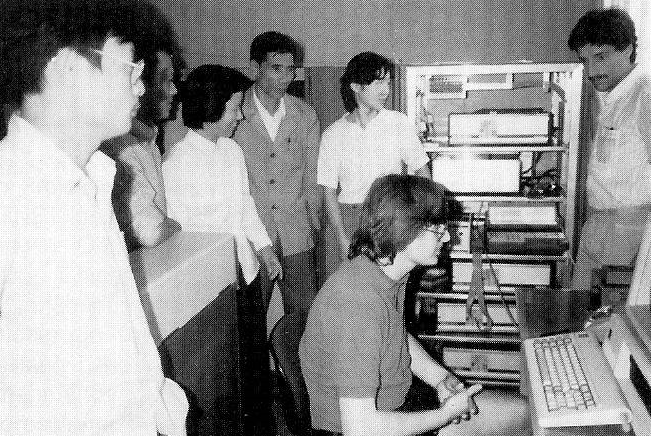 1987年9月14日,中國科研人員在北京試發電子郵件後等待來自卡爾斯魯厄大學的正確字符。圖片來自《科技日報》