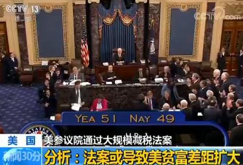 美國國會參議院2日凌晨投票通過大規模減税法案,標誌着特朗普政府和國會共和黨離完成美國三十年來最大規模減税計劃更近一步。對此美國共和黨方面稱,這份減税法案為提升美國經濟競爭力、阻止就業崗位流失海外和為中產階級減負提供了機遇。但民主黨批評這份減税法案主要讓美國大企業和富人受益。