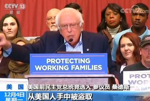 美國前民主黨總統競選人 參議員 桑德斯:所有的獨立研究顯示,通過的這份減税法案讓那些富得流油的人,享受極大的税收減免政策,相對而言數百萬的中產階級家庭,實際上賦税是增加的,同時它還讓一千三百多萬美國人,失去了醫保。
