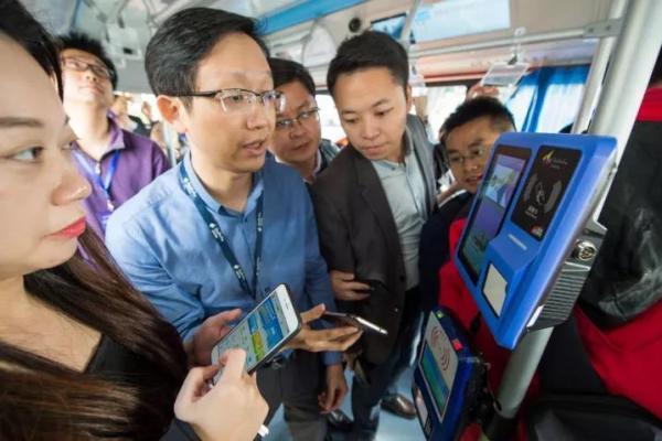 阿爾法巴智能駕駛公交車支持手機二維碼支付車資。