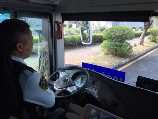 阿爾法巴行駛途中,駕駛員不需要操作油門、剎車、方向盤,公交車可以自己按照既定路線行進、停站。