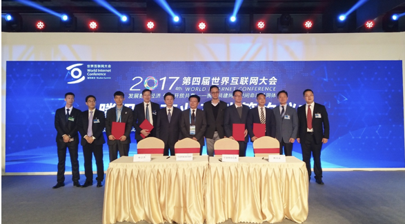 【環球網科技綜合報道】12月3日,第四屆世界互聯網大會再次於中國烏鎮拉開帷幕,本屆大會以“發展數字經濟,促進開放共享——攜手共建網絡空間命運共同體”為主題,羣英雲集,共襄盛舉。大會上,騰訊雲、寧波市經信委、鎮海區政府、浙江中之傑智能系統有限公司四方舉行隆重簽約儀式,聯手共建騰訊首個“中國製造2025”工業雲平台,並宣佈騰訊雲產業基地正式落地寧波鎮海。
