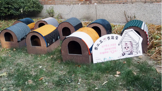 另一方面,作為城市中最常見的流浪動物之一,很多流浪貓並沒有固定的居住場所,只能寄住在愛心人士臨時搭建的貓窩。北京市目前就有20萬隻以上的流浪貓得不到大家的關注,如此龐大的數量,推薦給大家的一個好辦法就是定向捐贈舊衣,通過公益機構改造成貓窩,聯繫羣護人投放到指定地點 。在寒冷的夜晚,在寧靜的街道,在僻靜的小區送給它一個最好的歸宿。