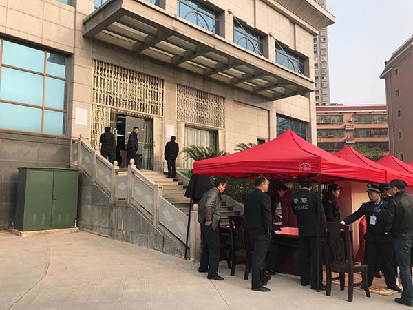 李億龍案9點開庭,早點7點開始,婁底中院門口馬路實施交通管制。本文圖片 澎湃新聞記者 譚君 圖