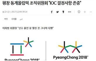 “尊重國際奧委會禁止俄參賽決定”,2018年平昌冬奧會組委會主席李熙範6日接受韓聯社採訪時表示,韓國接受國際奧委會禁止俄國家隊參加平昌冬奧會的決定,並稱,“與興奮劑事件無關的選手能參賽角逐獎牌,也算是不幸中的萬幸”。