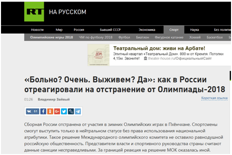 “疼痛難忍,卻仍需奮力生存”,今日俄羅斯電視台以此為題報道稱,國際奧委會的決定在俄羅斯社會引發集中關注。俄羅斯政府和體育部認為該決定“不公正”。許多俄羅斯政治人士對該決定的反應尤為強烈。