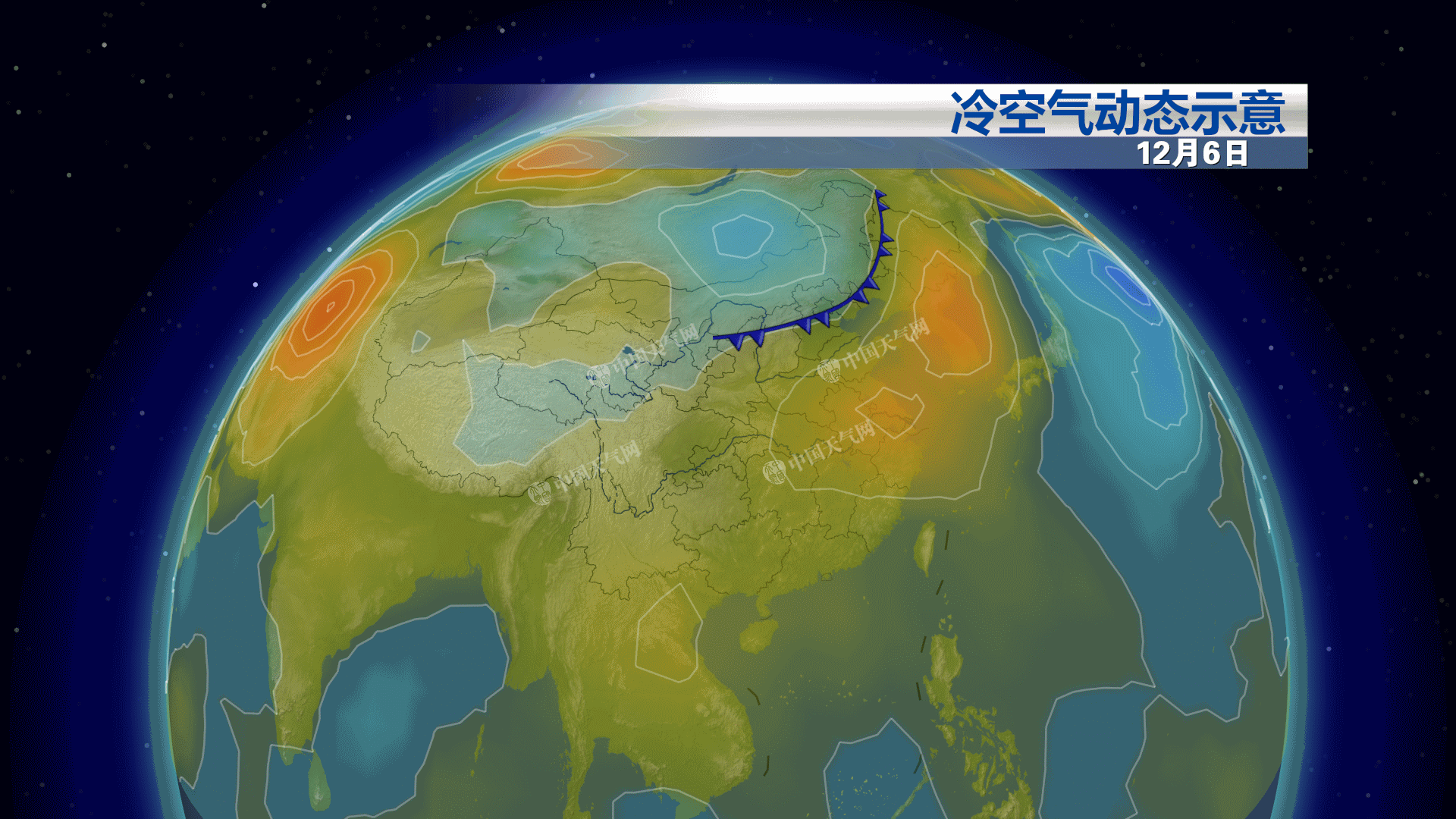 10-11日,受較強冷空氣影響,東北及華北等地氣温下降4~8℃、東北地區東部局地降温幅度可達10℃;上述地區並伴有4~6級偏北風,東部海域有7~9級偏北風。