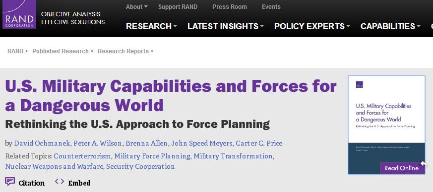 蘭德報告的作者隨後稱,考慮到這些因素,再對比美國現役部隊,可以説美國的武裝力量“不夠訓練有素和做好了應對措施”。