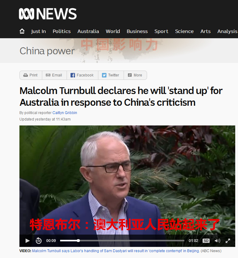 【環球網綜合報道 記者 趙衍龍】澳大利亞總理特恩布爾日前宣佈將推行新的反間諜和外國干預法,又指責稱“中國影響力正干預澳大利亞政治”,中國外交部發言人8日回應稱,我們對澳大利亞領導人有關言論感到震驚,這種言論純屬捕風捉影、無中生有,毒化了中澳關係氣氛,中方對此表示強烈不滿,已向澳方提出嚴正交涉。隨後特恩布爾週六(9日)回應了中方,並用普通話稱“澳大利亞人民站起來了!”
