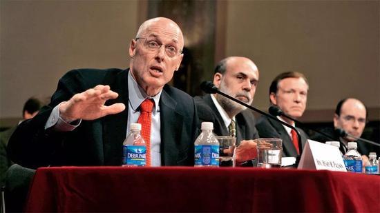 2008年9月23日,時任美國財政部長保爾森(左一)和美聯儲主席伯南克(左二)敦促國會盡快通過金融救援計劃