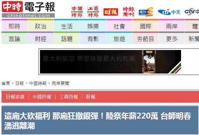 逃離潮來了? 台當局大砍教師福利 台媒又藉機酸大陸了