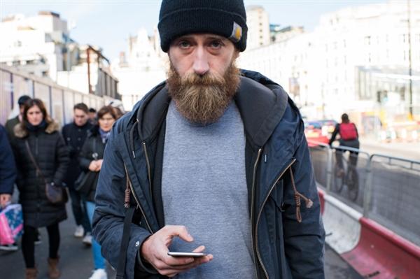 於是他開始在荷蘭和倫敦拍攝全神貫注用手的路人,告誡人們,大家只看到了煙酒、毒品的陰暗面,但沒有意識到手機給人們帶來的負面影響,比如令人難以專注、感到疲倦、脱離現實社會等等。希望該系列作品能成為一面鏡子,引起大家反思對手機的依賴。