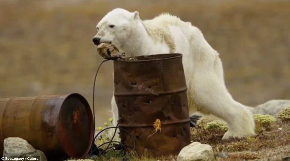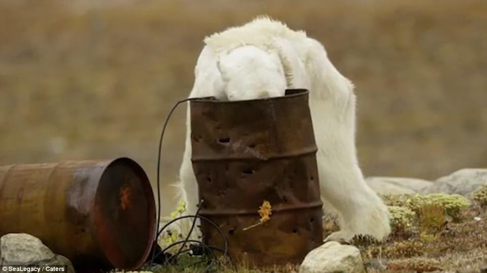 心碎!垂死野生北極熊垃圾箱翻找“救命”食物