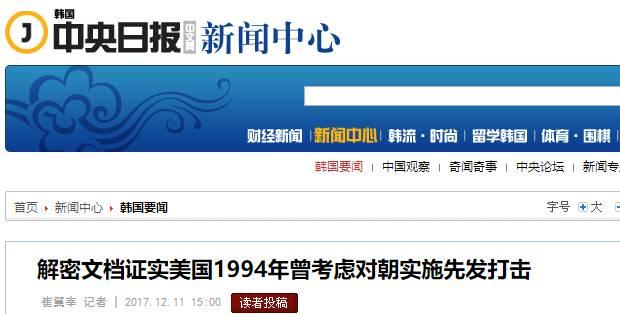 報道稱,美國國家安全檔案館公佈的解密文件顯示,1994年當朝鮮第一次為其生產裂變材料的核反應堆加註燃料後,美國克林頓政府曾考慮使用巡航導彈摧毀朝方核反應堆。時任美國防長佩裏表示,美國政府當時“採取了非常強硬的立場,禁止朝鮮製造核武器”。他曾作為總統特使,專門赴朝鮮半島與韓國時任總統金大中進行協調,表明美國計劃對朝開戰意向。
