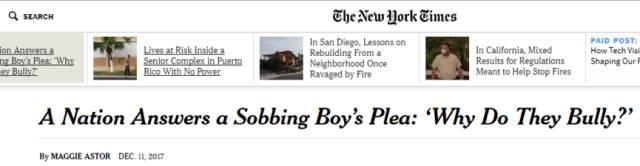 其中,《紐約時報》和《華盛頓郵報》都表示這是一件“感動美國”的事情,不僅展現了美國社會對於弱勢羣體的愛,更喚起了人們去反校園欺凌的意識。
