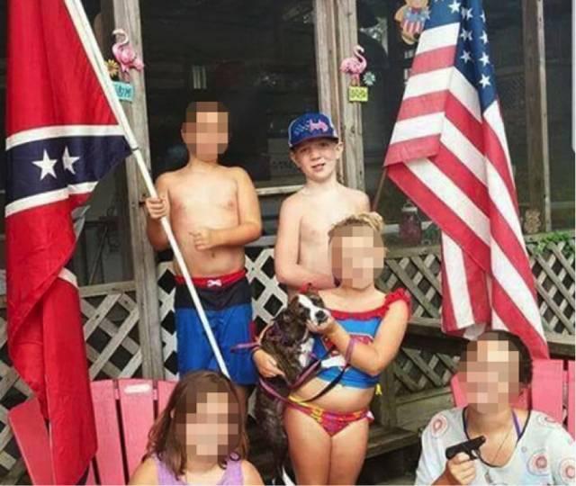 原來,一位美國黑人博主表示她發現這個小男孩的母親很可能是一個“白人種族主義者”,因為這位母親曾經帶着包括這個11歲小男孩在內的幾個孩子,一起揮舞過美國南北戰爭時期南方支持“蓄黑奴”的【邦聯】陣營的旗幟。