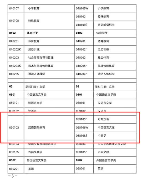教育部在上述回應中稱,在2012年版《專業目錄》中,“漢語國際教育”專業(專業代碼:050103),屬於文學門類、中國語言文學類。隨《專業目錄》一同發佈的《普通高等學校本科專業目錄新舊專業對照表》中,詳細註明了“漢語國際教育”專業對應1998年版《專業目錄》的“對外漢語”“中國語言文化”和“中國學”三個專業。