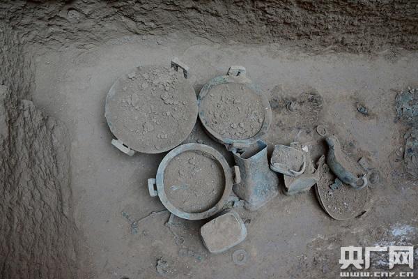 從整體看,發掘的19座墓葬,4座遭到盜擾,15座保存完好。共出土銅、金、鐵、石、玉、陶、料珠、漆木等各類材質的文物300餘件(組)。這些出土文物中,主要包括青銅禮器、車馬器、兵器三大類。文化風格以周文化為主,也包含少量秦文化因素器物。