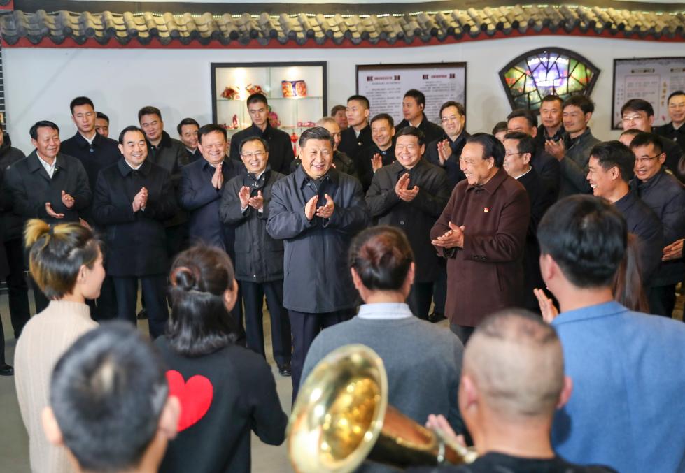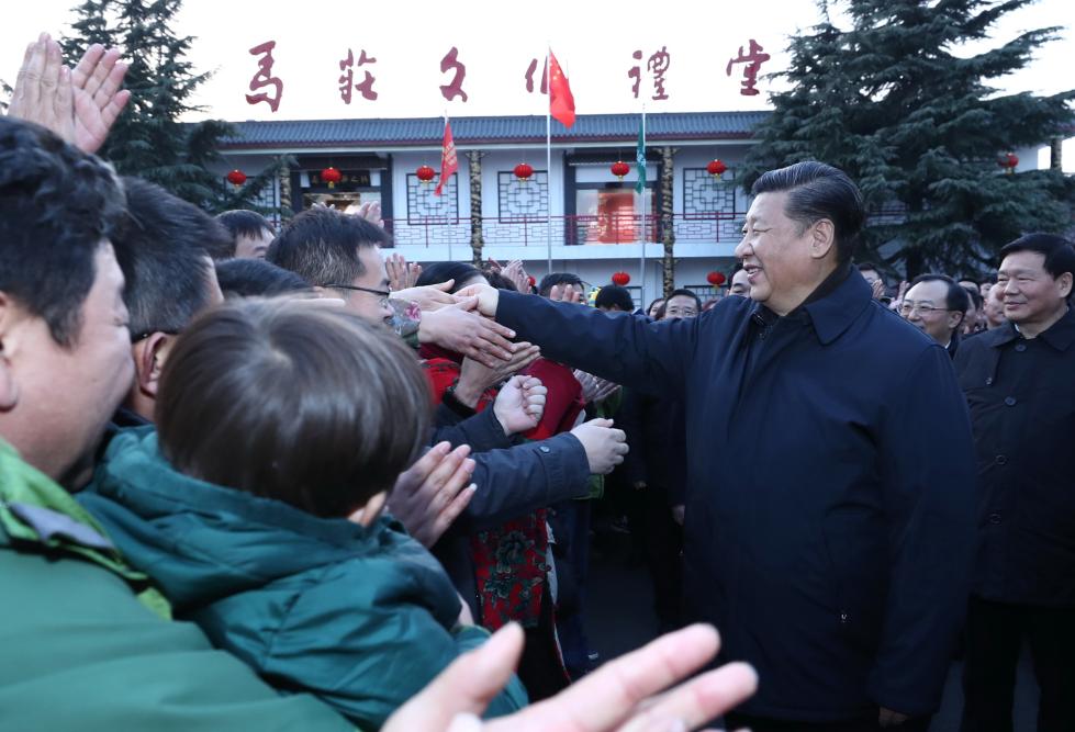 12日下午,正在徐州考察的習近平總書記走進馬莊村黨員活動室,與正在學習黨的十九大精神的黨員們親切交流。習近平説,剛才在村史館看到你們村班子很穩定,説明村幹部獲得了村民的支持。農村要發展好,很重要的一點就是要有好班子和好帶頭人,希望大家在十九大精神指引下把村兩委班子建設得更強。
