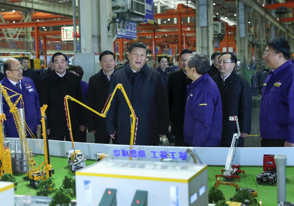 徐工集團廣場上,起重機、壓路機、挖掘機等錯落排開,職工代表熱烈鼓掌,歡迎總書記到來。習近平強調,中國這麼大,必須始終高度重視發展壯大實體經濟,不能走單一發展、脱實向虛的路子。發展實體經濟,就一定要把製造業搞好,當前特別要抓好創新驅動,掌握和運用好關鍵技術。