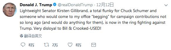 社論還列舉一籮筐它認為是特朗普的“罪過”,包括他支持醜聞纏身的阿拉巴馬州參議員候選人穆爾作虛假和誤導性表述、分化和道德失誤。吉利布蘭德則抨擊特朗普的Twitter貼文為“性別歧視抹黑”。