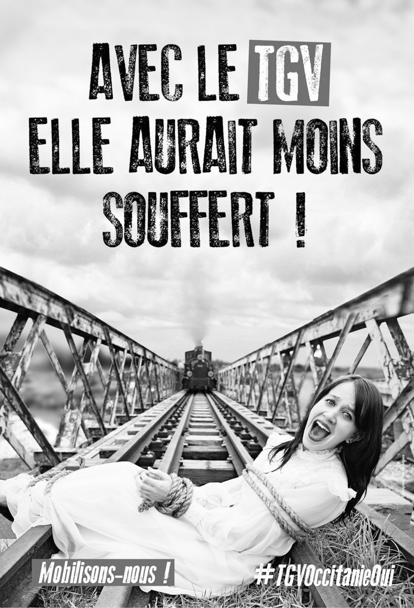 據俄羅斯“衞星”新聞網13日報道,從當地時間11日起,貝濟耶市當局開始在市內各處張貼一幅駭人的宣傳海報(如圖)。海報中,一名年輕女子被牢牢綁在鐵道上、嚇得失聲尖叫,她身後不遠處一列老式火車正在逼近。海報的宣傳語寫道:“如果是高速列車的話,她就能少受一些折磨。”不少法國民眾表示,剛看到這張海報的時候,還誤以為是某種“黑色幽默”的反諷,萬萬沒想到這一充滿“厭惡女性”元素的宣傳材料竟真的出自市政部門。網友在社交媒體上毫不客氣地指責梅納稱:“你真不要臉!”