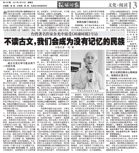 最後的聲音!余光中9月接受環球時報記者採訪音頻記錄