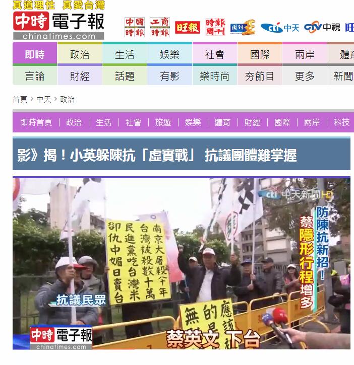 據台灣“中時電子報”報道,蔡英文12月13日現身台灣地區考試機構的頒獎典禮,且因為怕民眾尾隨抗議,台“總統府”並未提前通知行程。對此,報道諷刺稱,這是台當局和抗議民眾玩“躲貓貓”的把戲。