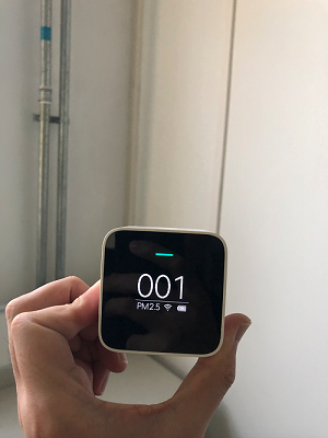 我們在一個128平米的房間將 AIRMX Pro 開機兩小時後測試效果。室內 PM 2.5 降到了 1,按照小米的説法,如果這個數值降到了 0 ,則表示空氣檢測儀已經損壞。實際上,這已經到了絕對純淨的環境,室內幾乎不存在 PM 2.5。再換一個角落測試,依然是最低值。