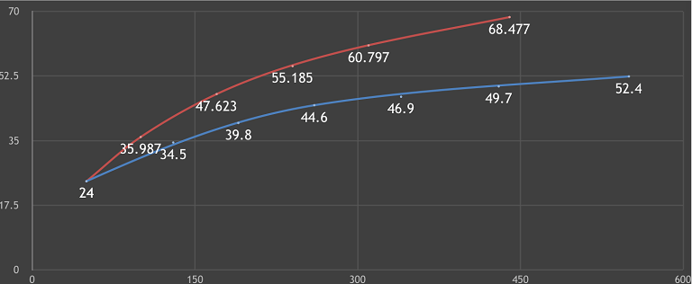 下圖橫軸是風量,單位是立方米每小時。縱軸是噪音,單位是分貝。