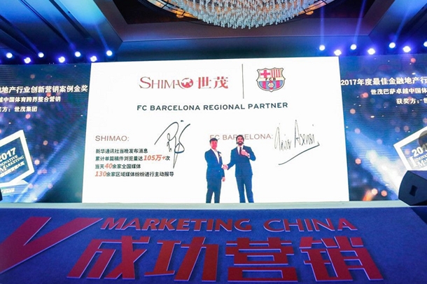 現場令記者耳目一新的是首次看到一家房企獲得了營銷大獎。憑藉與綠茵豪門巴薩俱樂部“卓越體育”戰略的開創性合作,世茂斬獲的“2017年度行業最佳創新營銷案例獎”金獎。這是迄今為止唯一一個獲得此獎項的地產類企業,也是少有的以體育跨界營銷案例得獎的企業。