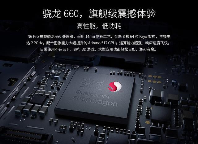 360手機N6 Pro搭載了高通驍龍660八核處理器,4050mAh大容量電池,支持18W快充,LPDDR4X雙通道內存,分為4GB+64GB、6GB+64GB和6GB+128GB三個版本,售價分別為1699元、1899元和2399元。