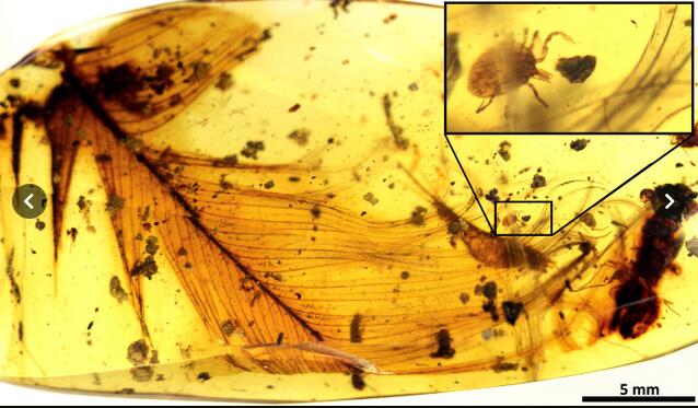 首次發現!英團隊琥珀中找到約9900萬年前寄生恐龍的吸血蜱