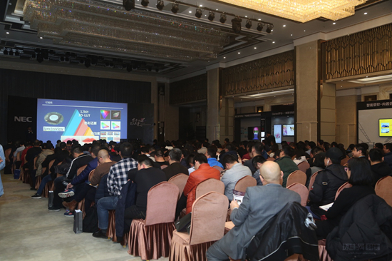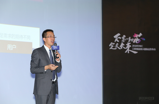 隨後,NEC(中國)有限公司顯示產品解決方案銷售支援本部副總經理崔永新向與會嘉賓詳細介紹了當下顯示行業生態環境的變化、顯示行業的市場情況、NEC的核心優勢及今天發佈的系列新品。崔總説,物聯網時代對於顯示終端的要求已經單純的從實現顯示功能變成對終端的智能要求。物聯網最大價值之一就是通過大數據的可視化,指導社會的生產生活等方方面面,因此顯示產品顯得尤為重要。就產品品質而言,NEC在器件選型、供應鏈管理、整機設計、量產品控等方面的專業品質及NEC專注顯示32年研發沉澱的歷史、豐富的顯示品類、600餘項專利技術及方案創新能力都是NEC的核心優勢。在產品線方面,NEC擁有豐富的顯示產品羣,涉及工程、教育、商務投影機,數字電影放映機,工程液晶顯示器及專業色彩顯示器。NEC顯示產品羣的技術應用呈現兩大特徵:優質技術不斷貫通,高端技術不斷下沉,逐步演變為產品家族性的特徵,進一步形成NEC的品牌符號。