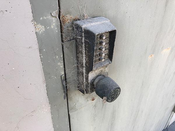 一隻黃毛小貓,看見有人過來,驚地鑽進了一個廠房的門洞裏。