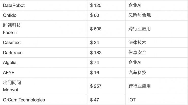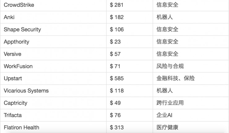 上榜的100家公司通過367筆交易獲得117億美元的股權融資,一些創業公司專注具體用例,例如,AiCure專門從事藥物依從性,Gong則對銷售團隊的來電分析,Zest Finance負責信貸承保。