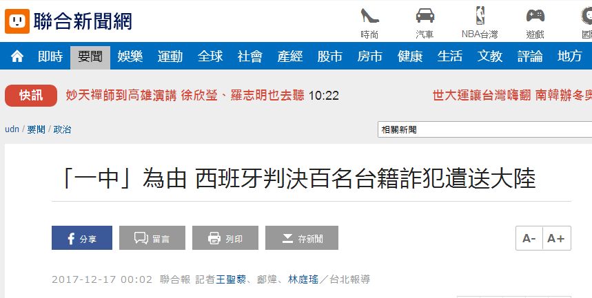 台當局不滿西班牙遵循“一中”遣返台籍嫌犯回大陸 台網友:感謝祖國!