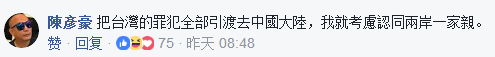 但網友對西班牙國家法庭的做法紛紛表示“大快人心”,有網友在台灣親綠媒體《自由時報》的臉書下留言稱,“把台灣的罪犯全都引渡去大陸,我就考慮兩岸一家親”,還有網友表示,“感恩祖國制裁”,也有網友反諷台當局“民進黨那羣人怎麼不出聲了?躲哪裏去了?”更有不少網友對陸委會的表態不滿,稱“遺憾什麼,無能政府就只會用騙的方式打嘴炮”。