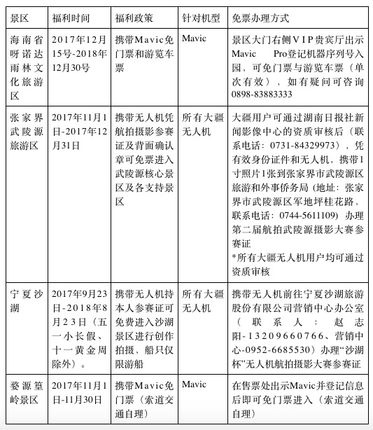 大疆與國內四大景區建立合作的意義在於,聯手申請長期空域,一來推動航拍旅行的規範化,二來發掘和創造更多讓用户“暢快飛”的機會及場景,目前大疆正在通過各地經銷商、飛手團隊徵集適合開展航拍旅行合作的風景區、未來還有更多風景區對無人機用户敞開大門。