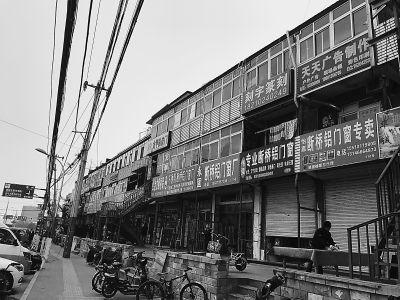 在朝陽路楊閘公交汽車站南側,沿街有一排樓房,每棟樓對着大街的樓體上掛滿了廣告牌,從一層掛到了三四層的樓外邊,花花綠綠的廣告牌大小不一、顏色各異,有的是掛在二樓的窗户下面,有的是掛在門頭上,其中以廣告製圖、裝修、鋁合金門窗、室內外設計、足療養生館為主,一層的商鋪多是鋁合金門窗,半敞開的門裏面堆放着已做好的門框,有的堆到了門口。