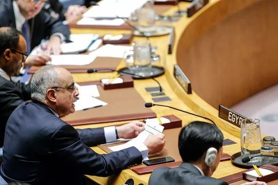 12月18日,在紐約聯合國總部,埃及常駐聯合國代表阿布勒阿塔出席安理會會議。新華社/法新 特朗普本月6日宣佈承認耶路撒冷為以色列首都,並將啓動美駐以使館從特拉維夫遷往耶路撒冷的進程。此舉遭國際社會普遍反對,擁有57個成員國的伊斯蘭合作組織13日宣佈,承認東耶路撒冷為巴勒斯坦國首都,同時宣稱美國的決定“無效”。土耳其總統埃爾多安17日表示,土方將在東耶路撒冷開設駐巴勒斯坦國大使館。