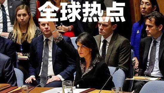 12月18日,在紐約聯合國總部,美國常駐聯合國代表黑莉在投反對票時舉手。新華社/路透 中東問題專家馬曉霖指出,在耶路撒冷地位問題上,阿拉伯國家和伊斯蘭國家來自民眾層面的壓力巨大,會倒逼政府做強硬表態,並波及這些國家政府與美國的合作,對這些國家與以色列的關係、在美國國際戰略中的配合程度都會產生巨大沖擊。