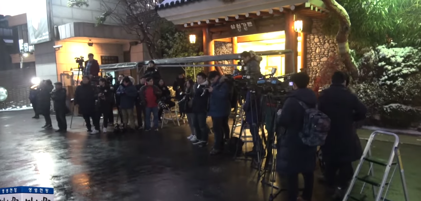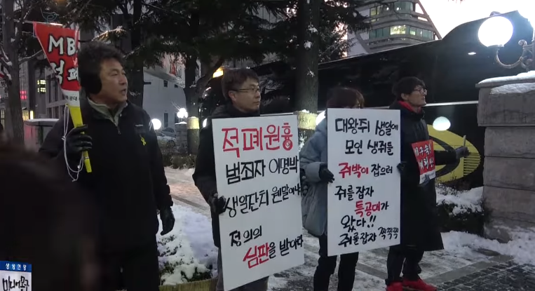據韓國《中央日報》報道,當地時間18日下午,李明博現身首爾江南一家餐廳附近,準備與40多位親李人士參加生日宴及送年會等活動。在他抵達餐廳前,現場就聚集了大批記者,同時還有手持標語,呼籲“清算李明博積弊”的多位市民。