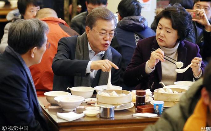 文在寅在點餐之後掃描了桌上的二維碼進行結算。當時文在寅對中國的手機結賬系統表現出興趣,並問“這樣就算付完錢了嗎?”,在場的韓國駐華大使盧英敏也表示“中國大部分都是使用手機結賬。”