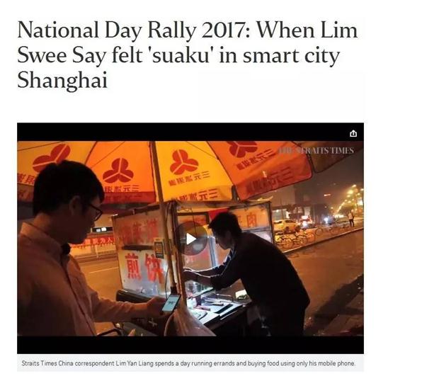 8月20日,新加坡《海峽時報》刊登了一篇題為《2017國慶羣眾大會:當林瑞生在智能城市上海感到自己成了“鄉巴佬”》的文章。