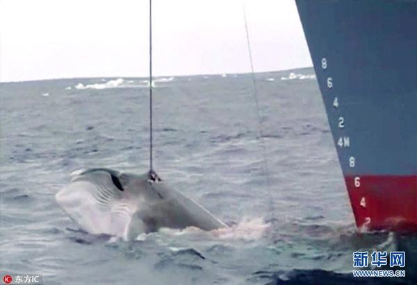 國際捕鯨委員會1986年通過《全球禁止捕鯨公約》,禁止商業捕鯨,但允許捕鯨用於科學研究。反捕鯨人士説,日本利用公約這一漏洞,每年在南極海域以科研名義捕殺數百頭鯨。(沈敏)【新華社微特稿】