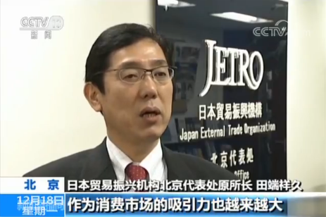 日本貿易振興機構北京代表處原所長田端祥久:中國的中產階層增長非常快,消費增長快,作為消費市場的魅力越來越大,日企也對這方面非常感興趣,會加大投資。