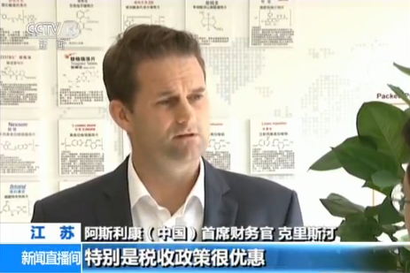 阿斯利康首席財務官克里斯汀:我們在決定去哪兒投資,會有很多的考慮因素,最後決定我們在中國加大投資一個非常重要的理由就是,這裏的投資環境很好,特別是税收政策很優惠,很透明。